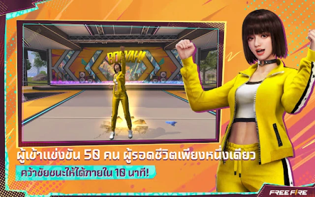 สัมผัสการต่อสู้เอาชีวิตรอดที่เข้มข้นในทุกๆ 10 นาที ที่ซึ่งคุณและผู้เล่นอีก 49 คนจะถูกส่งลงบนเกาะร้าง เพื่อช่วงชิงความเป็นสุดยอดผู้รอดชีวิต วางแผนการกระโดดร่มอย่างแม่นยำ ค้นหาอาวุธยุทโธปกรณ์ ซ่อนตัวในป่าทึบ หรือพรางกายใต้พงหญ้าเพื่อซุ่มโจมตีศัตรูจากทุกระยะทาง ไม่ว่าจะขับยานพาหนะสำรวจแผนที่ หรือหลีกเลี่ยงการโจมตีทางอากาศเพื่อชิงความได้เปรียบ Free Fire มอบการควบคุมที่ง่ายดายพร้อมกราฟิกที่ลื่นไหล สมจริง เตรียมพร้อมสำหรับการสร้างทีมกับเพื่อนได้สูงสุด 4 คนพร้อมระบบพูดคุยด้วยเสียงในเกม หรือจะเลือกสนุกกับโหมด 4v4 ที่เล่นจบไวและตื่นเต้นไม่แพ้กัน ขอให้คุณยืนหยัดเป็นคนสุดท้ายใน Free Fire!