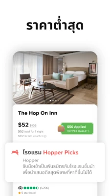 ด้วยเทคโนโลยีการคาดการณ์ราคาที่แม่นยำถึง 95% Hopper สามารถวิเคราะห์แนวโน้มราคาตั๋วเครื่องบินและโรงแรมล่วงหน้าได้นานถึงหนึ่งปี ระบบอัจฉริยะจะแจ้งเตือนคุณเมื่อเป็นช่วงเวลาที่เหมาะสมที่สุดในการซื้อ ไม่ว่าจะแนะนำให้จองทันทีหรือรออีกสักหน่อย เพื่อให้คุณได้รับข้อเสนอที่ดีที่สุดเสมอ ยิ่งไปกว่านั้น Hopper ยังมอบฟีเจอร์ Price Lock ให้คุณตรึงราคาดีลสุดคุ้มไว้ได้ ไม่ต้องรีบร้อนตัดสินใจ หากราคาสูงขึ้น คุณก็จ่ายแค่ราคาที่คุณล็อกไว้ แต่ถ้าลดลง คุณก็จะได้ในราคาที่ถูกกว่า พร้อมรับ Carrot Cash ทุกการจอง เพื่อเป็นเครดิตสำหรับทริปถัดไป และปลดล็อคส่วนลดพิเศษจากดีลลับเฉพาะของ Hopper ที่หาที่ไหนไม่ได้อีกแล้ว