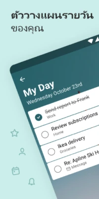 เริ่มต้นวันใหม่ด้วยความชัดเจนและจัดการทุกสิ่งได้อย่างง่ายดายด้วย Microsoft To Do ผู้ช่วยส่วนตัวที่จะเปลี่ยนวิธีที่คุณวางแผนและจัดระเบียบชีวิต ไม่ว่าจะเป็นภารกิจเร่งด่วนในที่ทำงาน โปรเจกต์ที่โรงเรียน หรือรายการของใช้ในบ้าน แอปพลิเคชันนี้ออกแบบมาเพื่อทำให้ทุกอย่างเป็นระเบียบและบรรลุผลสำเร็จได้จริง คุณสมบัติ "My Day" จะช่วยให้คุณโฟกัสกับสิ่งที่สำคัญที่สุดในแต่ละวัน พร้อมแนะนำงานที่ปรับให้เข้ากับคุณ ทำให้การเริ่มต้นและดำเนินงานราบรื่นไร้กังวล
