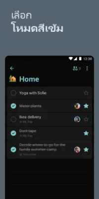สัมผัสอิสระในการเข้าถึงและจัดการรายการของคุณได้จากทุกที่ ทุกอุปกรณ์ ไม่ว่าจะเป็นโทรศัพท์ แท็บเล็ต หรือคอมพิวเตอร์ Microsoft To Do มอบความยืดหยุ่นสูงสุดในการทำงานร่วมกันได้อย่างราบรื่นกับเพื่อน ครอบครัว เพื่อนร่วมงาน หรือเพื่อนร่วมชั้น เพื่อแบ่งปันงานและรายการต่างๆ ได้อย่างง่ายดาย จัดระเบียบด้วยรายการที่มีสีสันหลากหลาย ตั้งการแจ้งเตือนและกำหนดวันครบกำหนด ไม่ว่าจะเป็นแบบครั้งเดียวหรือแบบประจำ เพื่อให้คุณไม่พลาดทุกรายละเอียดสำคัญ นอกจากนี้ คุณยังสามารถแบ่งงานใหญ่ให้เป็นขั้นย่อยๆ ที่จัดการได้ง่าย เพิ่มบันทึกย่อ หรือแนบไฟล์สำคัญได้สูงสุด 25 MB ในแต่ละงาน เพื่อให้ข้อมูลทั้งหมดครบถ้วนในที่เดียว